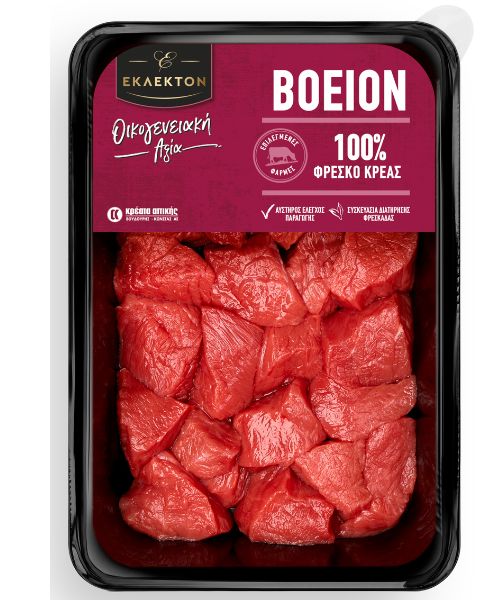 Με τις έτοιμες κοπές κρέατος σε δισκάκι, εξασφαλίζετε μεγαλύτερη διάρκεια συντήρησης, έχοντας έτοιμη, μεριδοποιημένη την κοπή σας.  Τυποποιημένα κομμάτια από 100% φρέσκο κρέας, προσεκτικά επιλεγμένα και συσκευασμένα, για να διατηρείται η φυσική τους γεύση και η θρεπτική τους αξία.